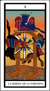 Significados: Éxito, positividad, dinero, ganancias, destino, la historia se repite, las cosas siguen su curso, todo gira continuamente para volver al mismo sitio, relatividad, lo que hoy está arriba mañana está abajo y al revés, debes trabajar tu karma para evolucionar y no tropezar dos veces en la misma piedra.