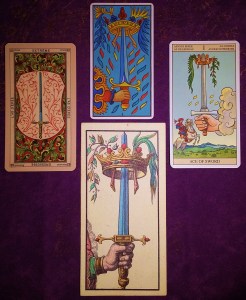 Meanings: intellect, wisdom, mind, reason, pain, clarity, make a decision that forces you to stay with something and renounce the rest, radical choice with double edge, impose the reason to the feelings, tense situation.